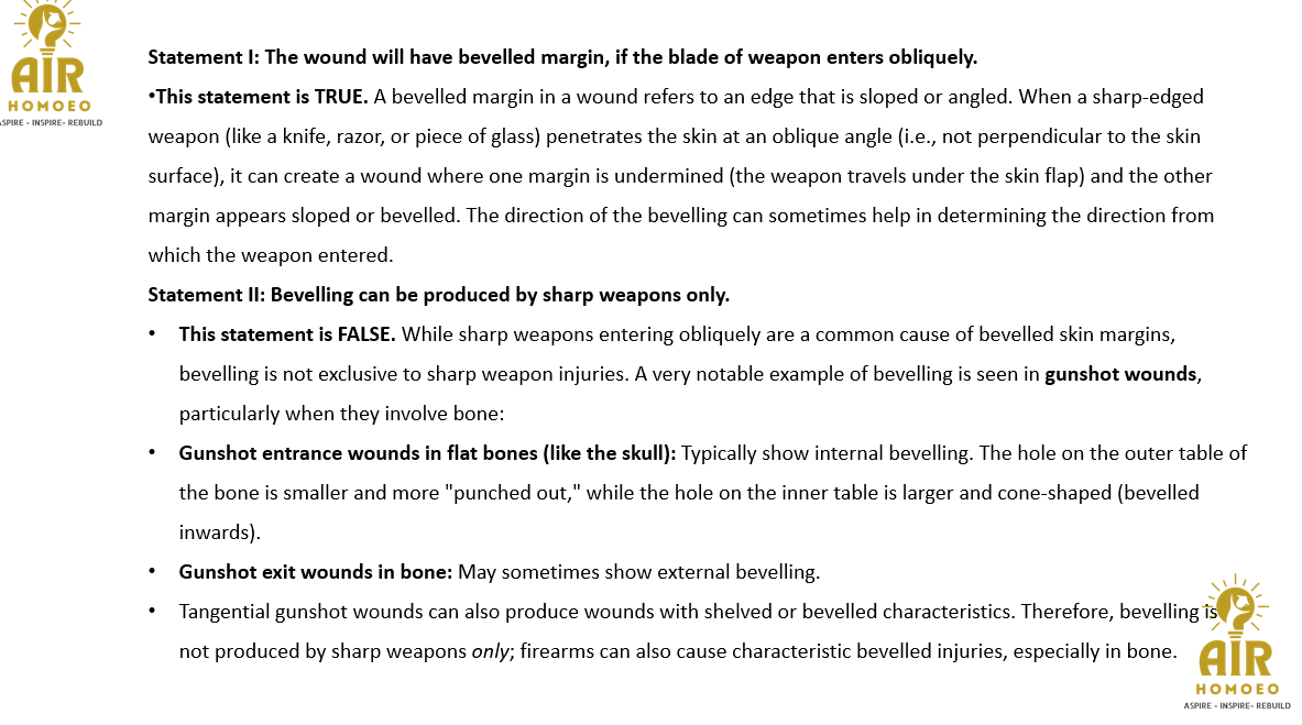 Statement Il: Bevelling can be produced by sharp weapons only.
