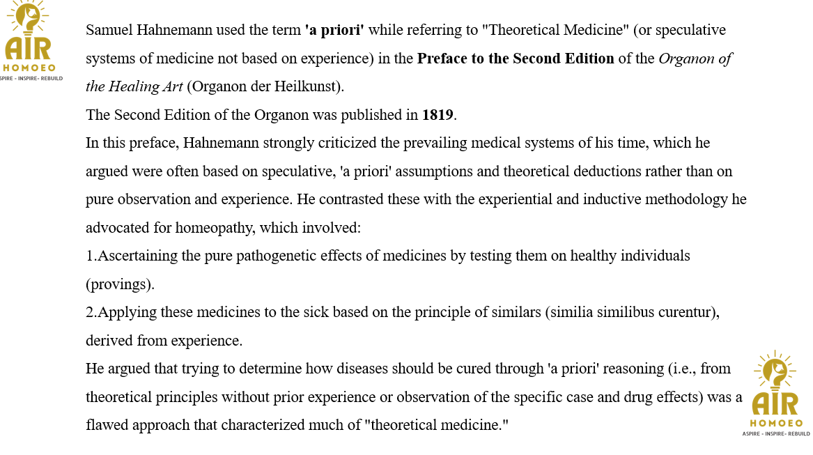 In preface of which edition of Organon, Hahnemann used the term ‘a priori’ while referring to Theoretical Medicine?