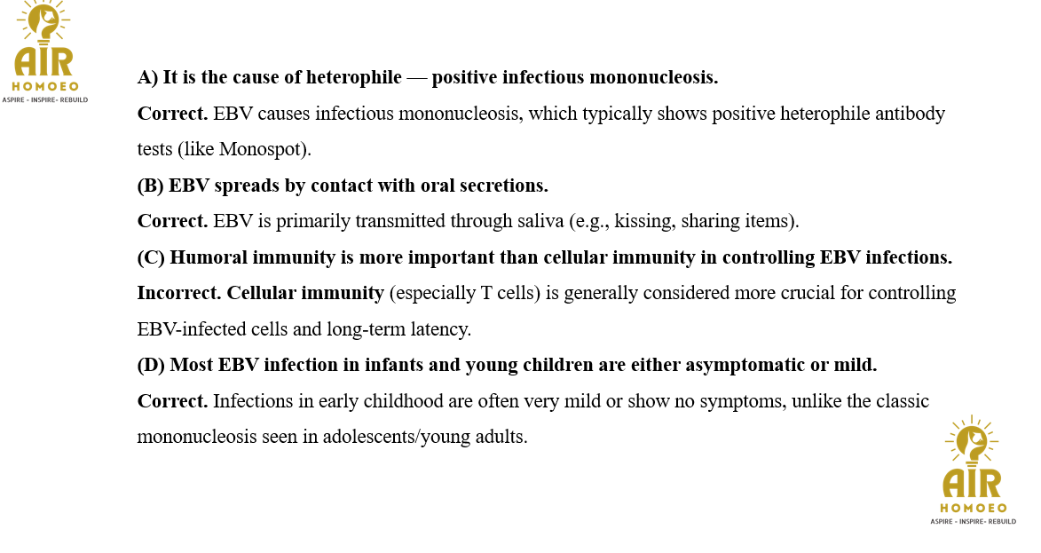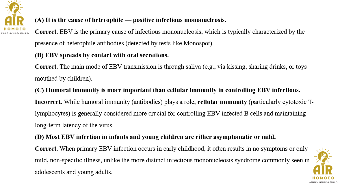 (D) Most EBV infection in infants and young children are either asymptomatic or mild.