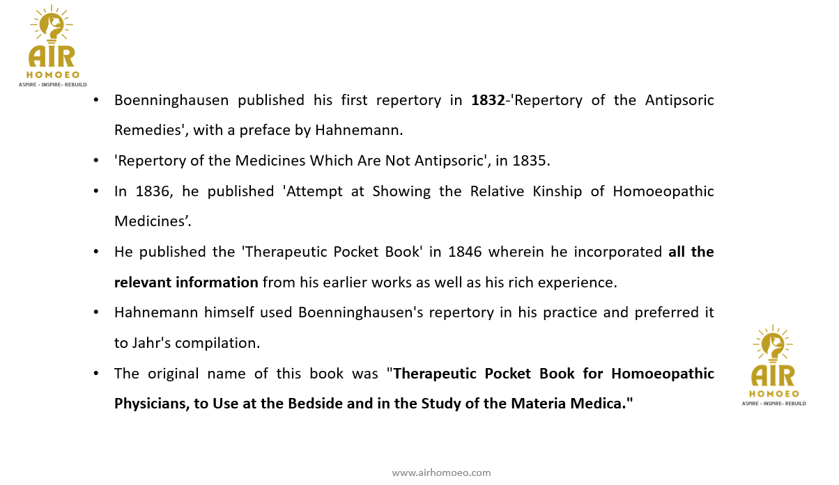 Boenninghausen’s therapeutic pocket book consist of all the following features