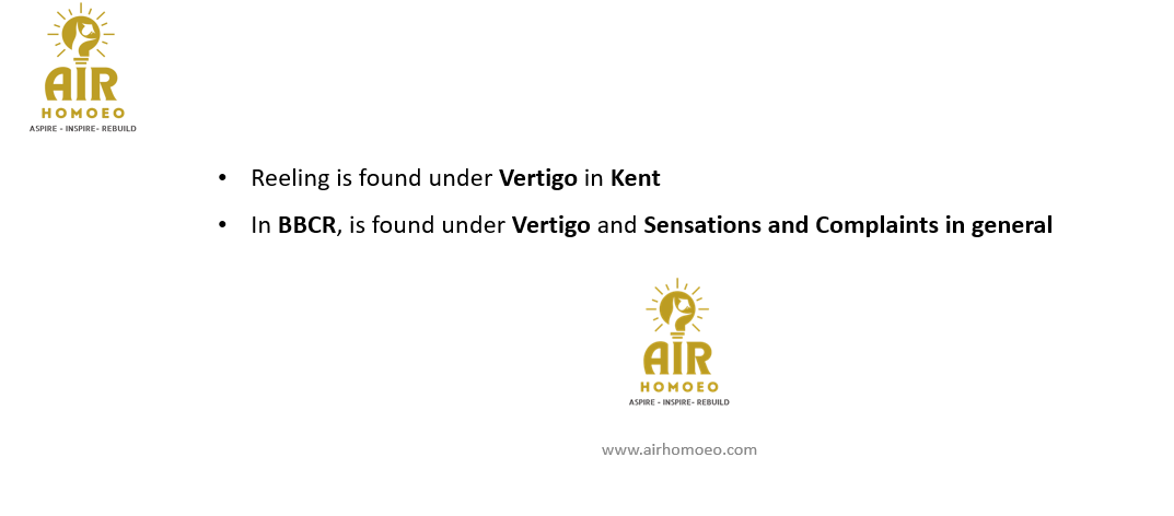 In Kent’s Repertory Rubric “Reeling” is placed under