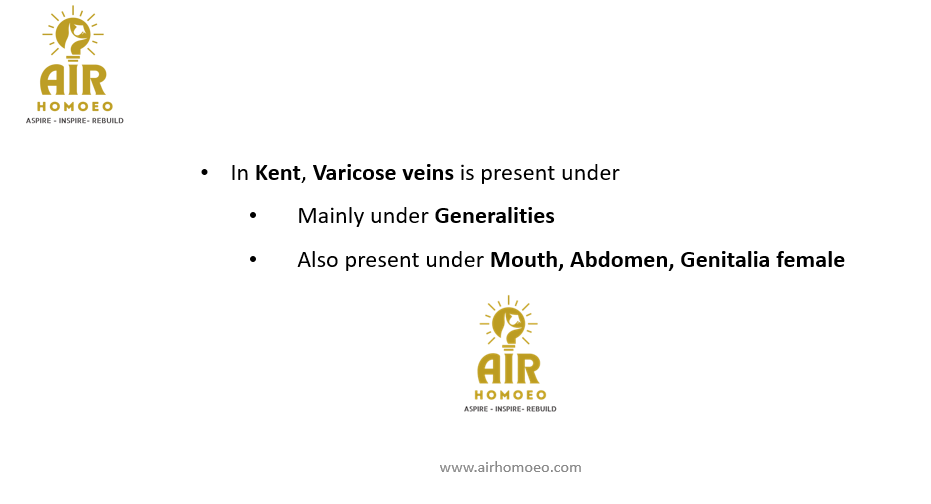 In Kent Repertory, ‘Varicose veins’ is found under:
