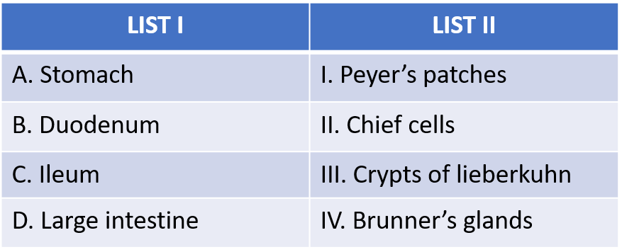 Match the list with their corresponding histological features
