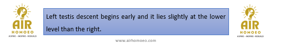 Assertion A: Left testis is slightly lower than the right.