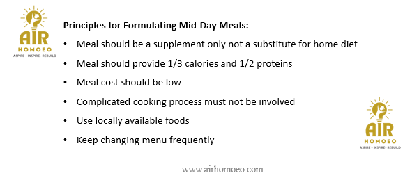 Which of the following are true regarding principles suggested for Mid-day meal programme?