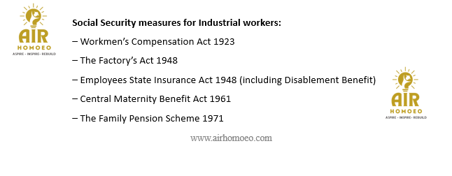 Socio-security measures that are provided to the workers by which of the following Act/Acts: