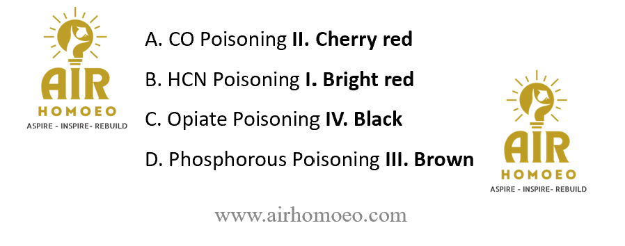 In which one of the poisonings, is there yellowish discoloration of the skin in post-mortem amination?