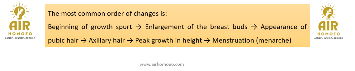 The correct order of appearance of changes in puberty is: