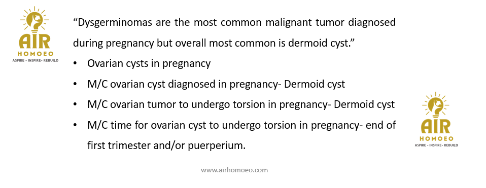 E. M/C time for ovarian cyst to undergo torsion in pregnancy- end of first trimesterCorrect