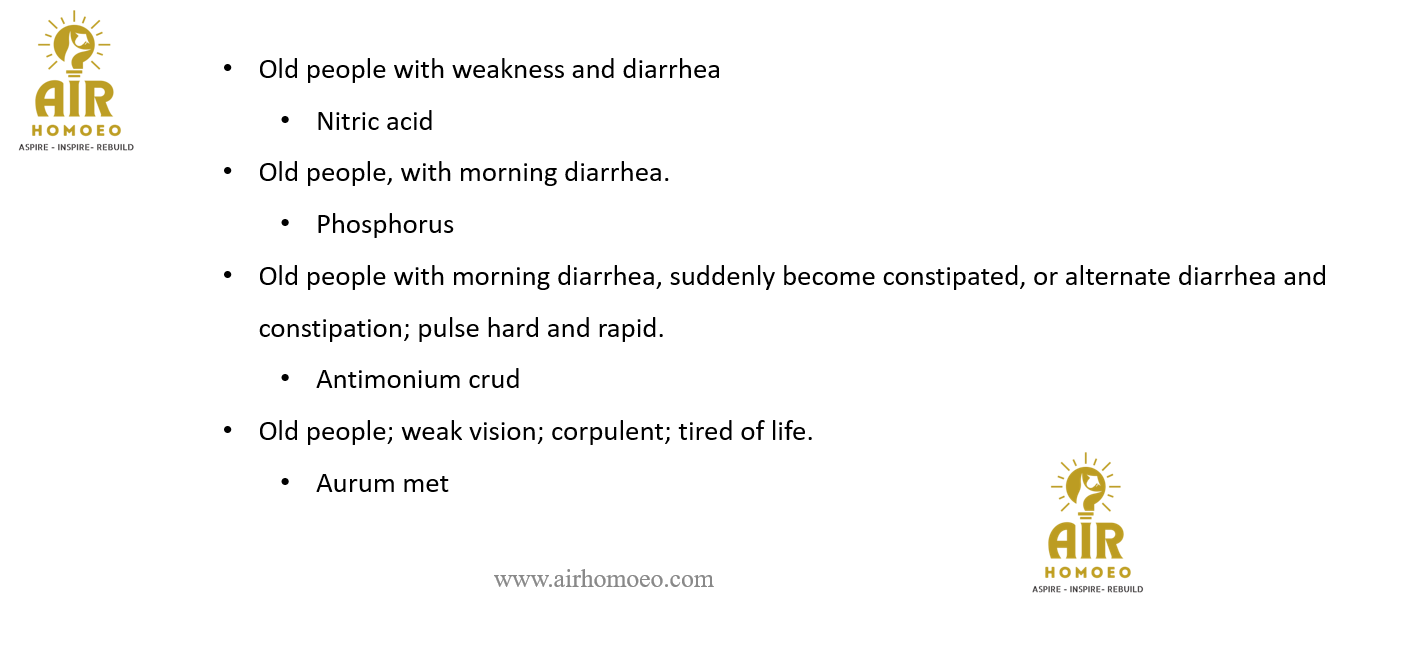 Old people with morning diarrhea, suddenly become constipated, or alternate diarrhea and constipation; pulse hard and rapid.