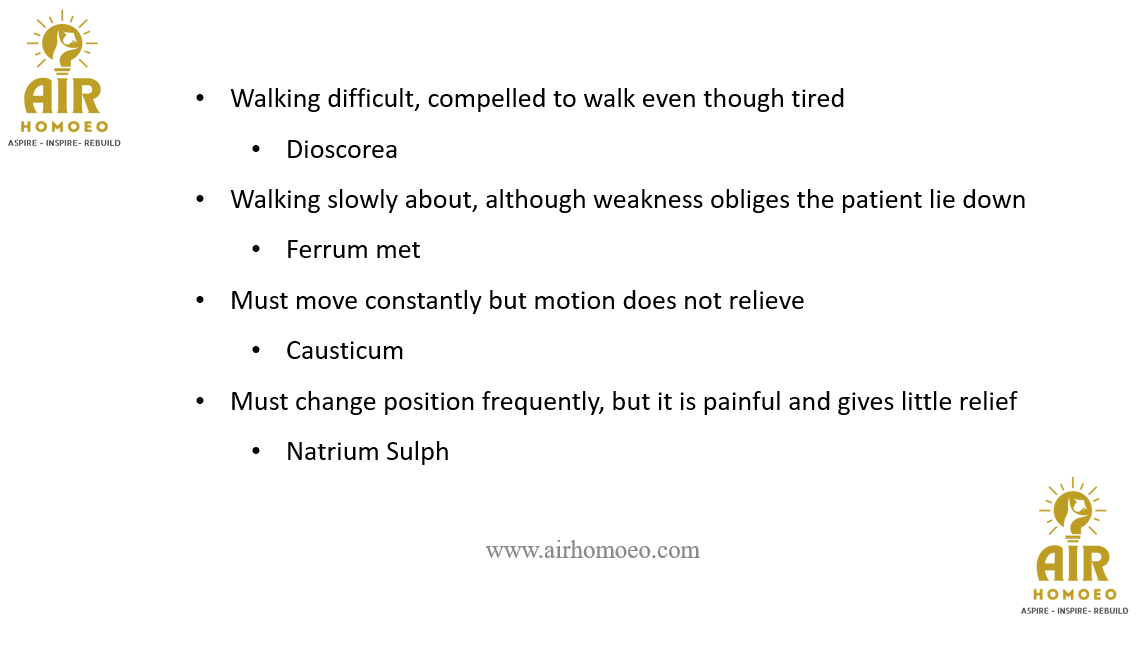 > Walking difficult, compelled to walk even though tired