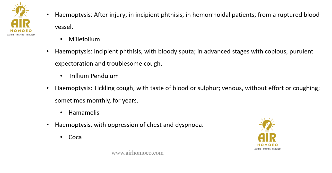 Hemoptysis, with oppression of chest and dyspnea.