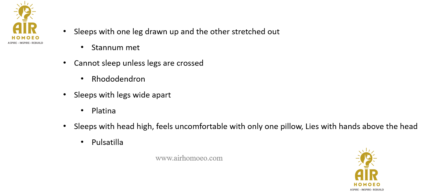Sleeps with one leg drawn up and the other stretched out