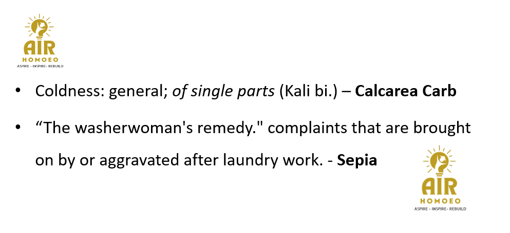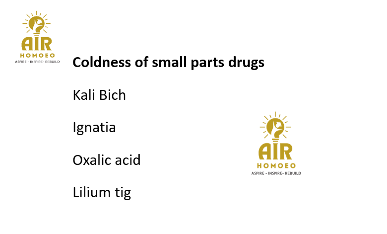 Among these following all has coldness of small parts EXCEPT
