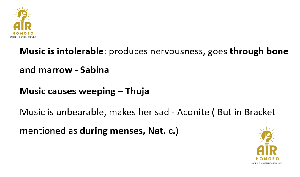 Music is unbearble, makes her sad during menses