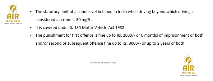 What is the upper permissible limit of alcohol allowed while driving in India –