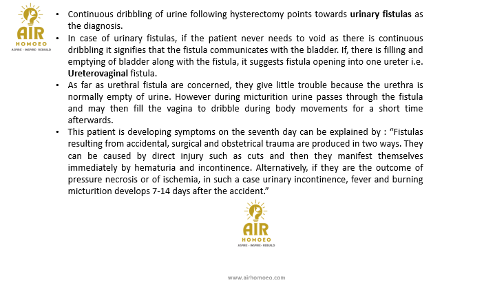 A 48-years-old lady underwent hysterectomy. On the seventh day, she developed fever, burning micturition and continuous urinary dribbling. She can also pass urine voluntarily. The diagnosis is: