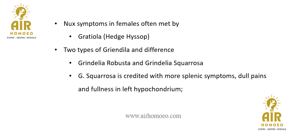 Nux symptoms in females often met by