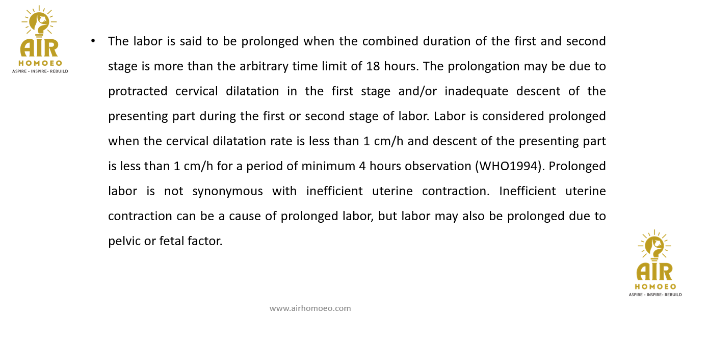 The labor is said to be prolonged when the combined duration of the first and second stage is more than the arbitrary time limit of