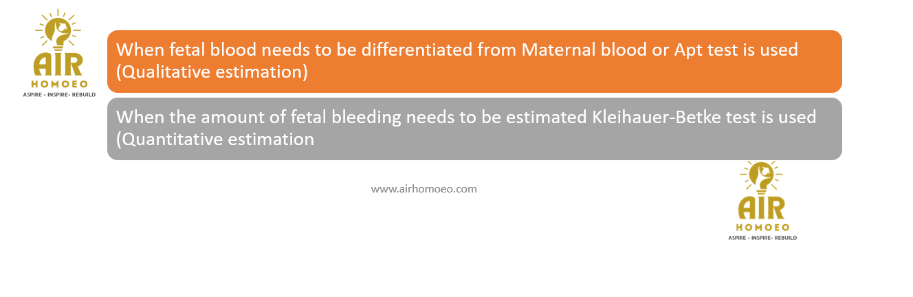 Which test differentiates maternal and fetal blood? (Qualitative)