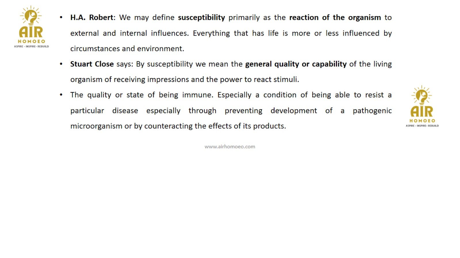 Statement I: Stuart Close says, “By susceptibility we mean general quality or capacity of the living organism of receiving impressions the power to react to stimuli”.