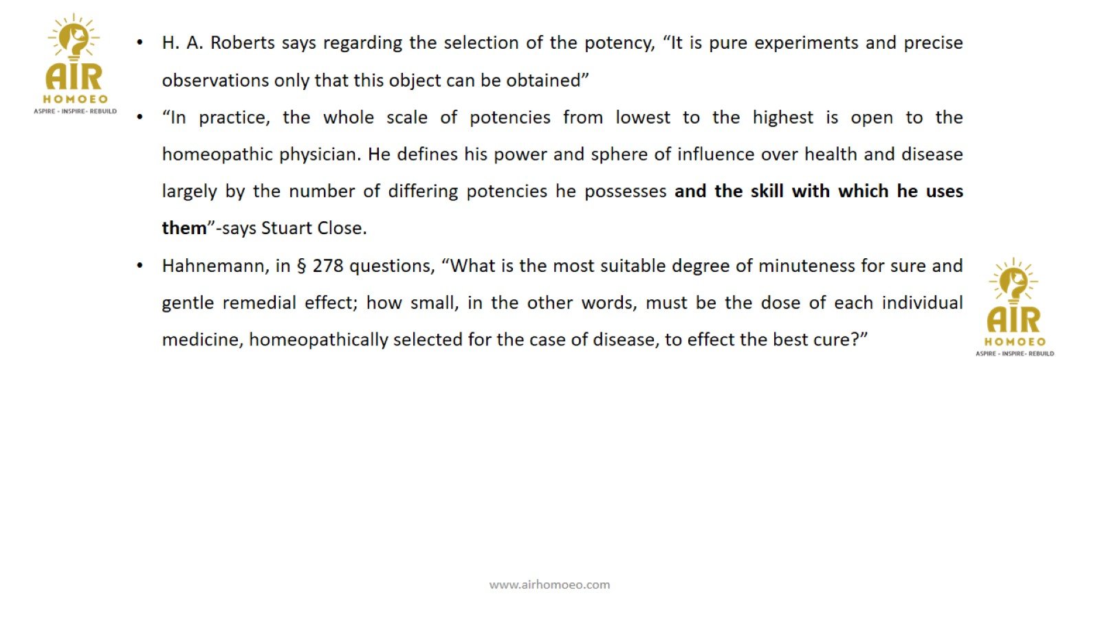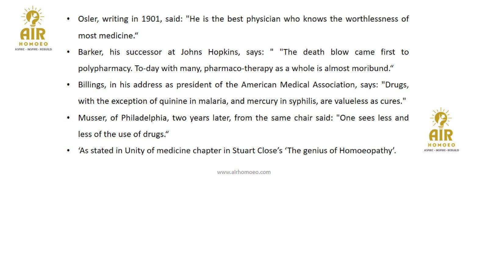 “By continual diluting and succussing, remedies neither stronger nor weaker, but their individual peculiarities get become more and more developed“, is quoted by