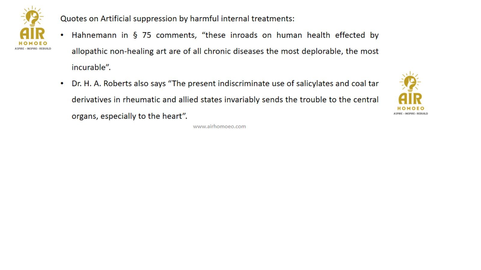 Reason R: It suppresses symptoms and destroys the power of elimination by locking up the secretion in all states.