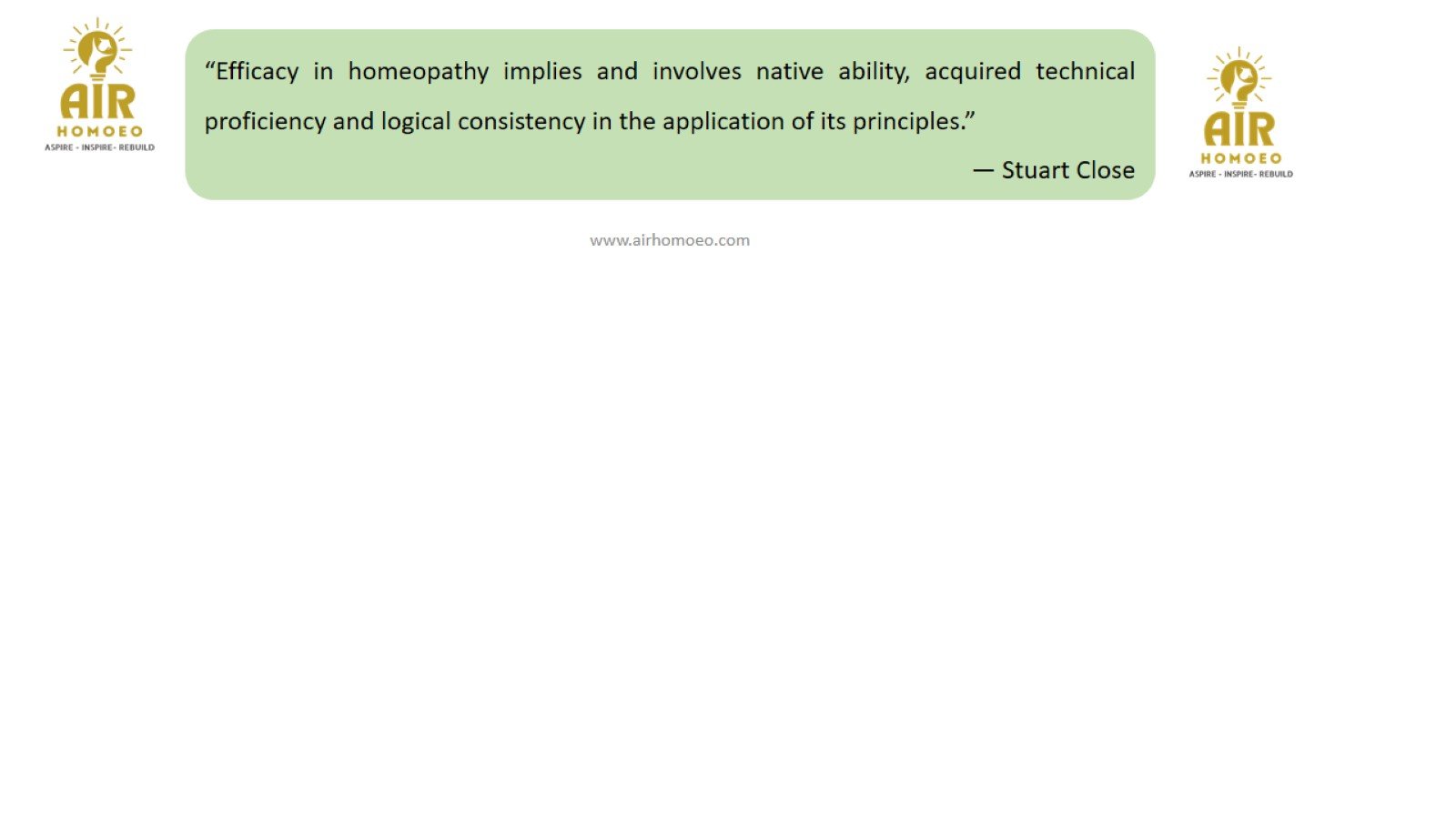 “Efficacy in homeopathy implies and involves native ability, acquired technical proficiency and logical consistency in the application of its principles.” is stated by,