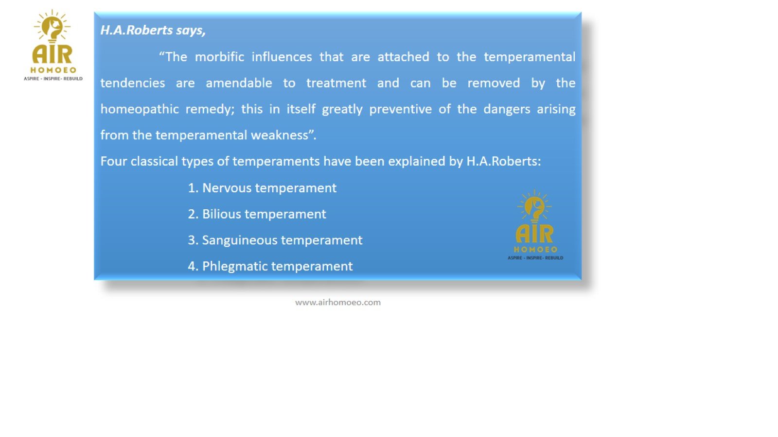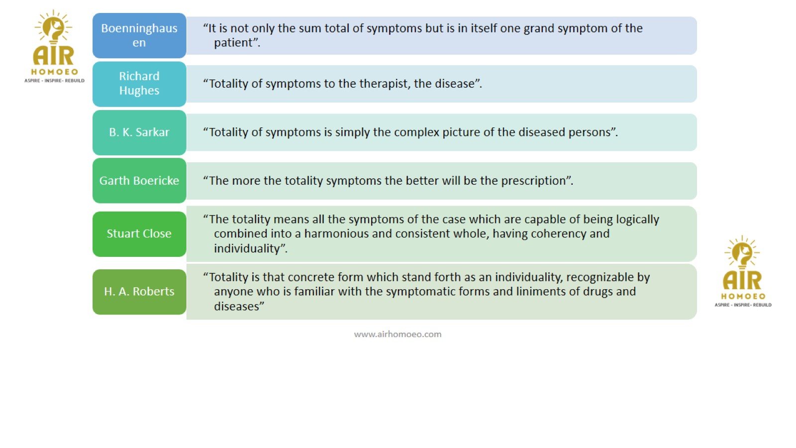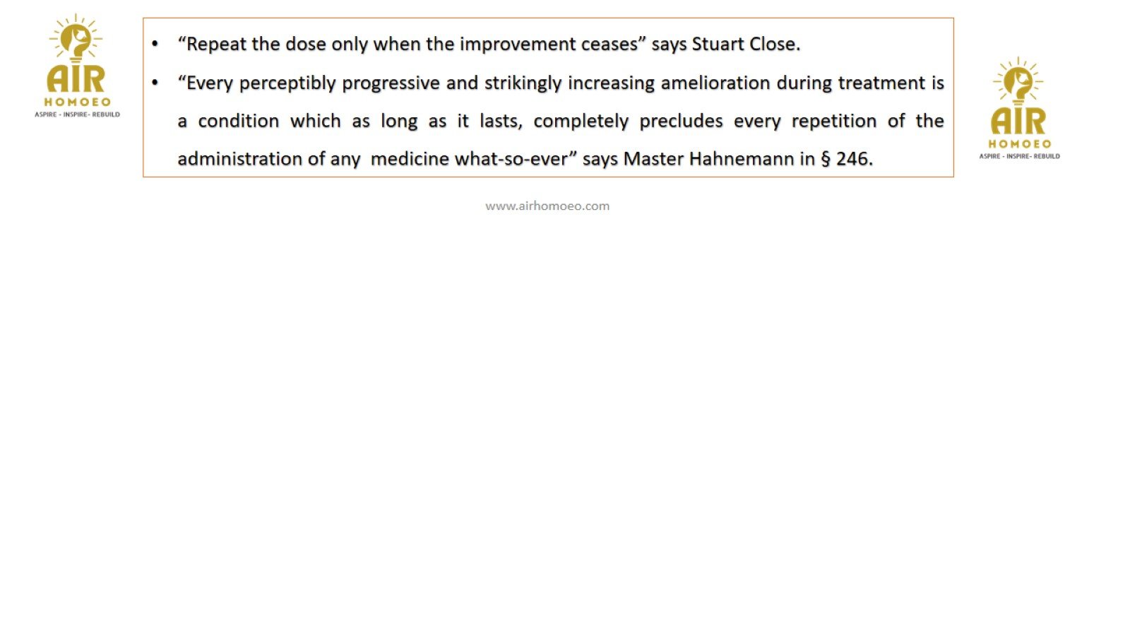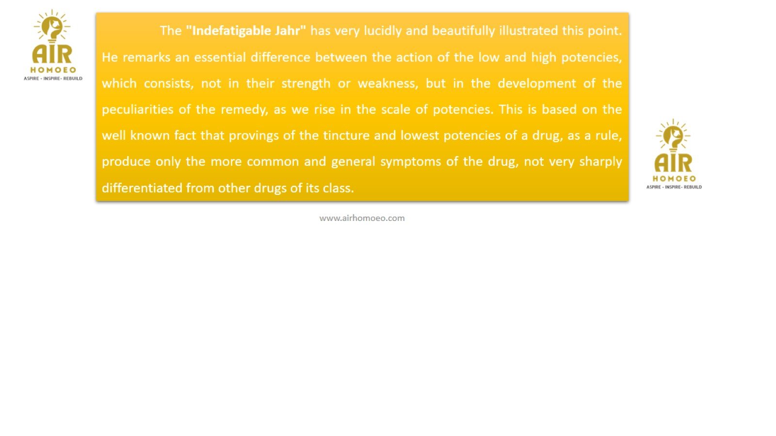 “By continual diluting and succussing, remedies neither stronger nor weaker, but their individual peculiarities get become more and more developed“, is quoted by