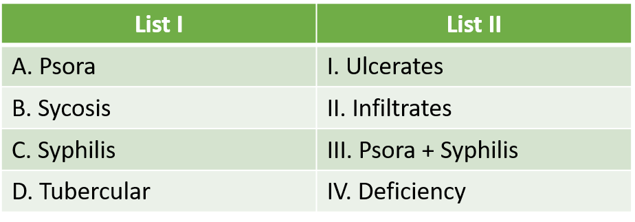 Match the list of miasms with their peculiarities.
