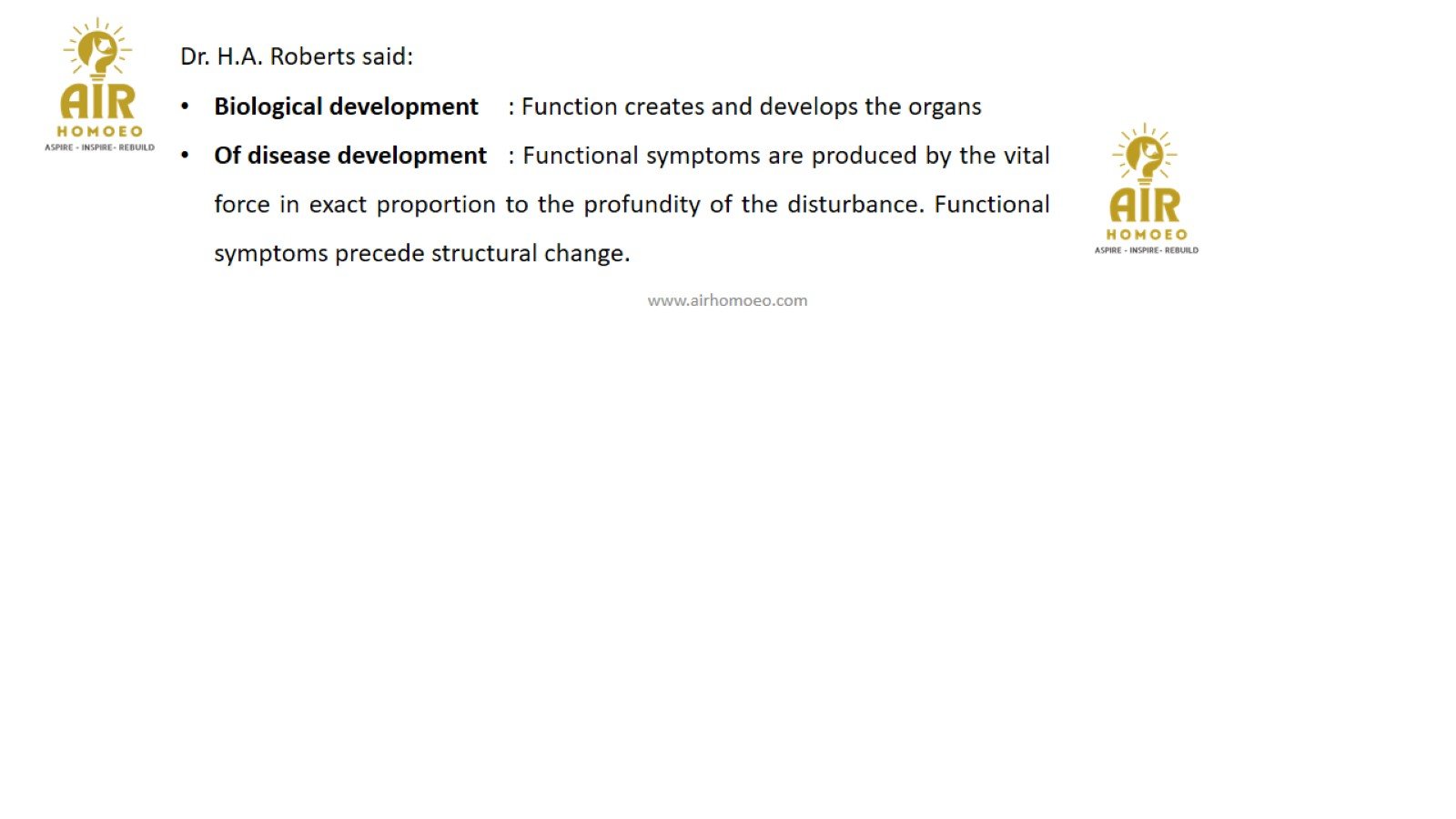 Assertion A: Our aim is to allow the vital force to express itself in its own chosen way when it is deranged