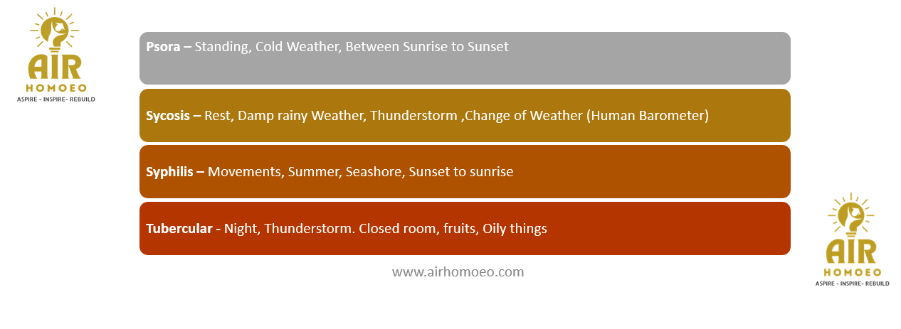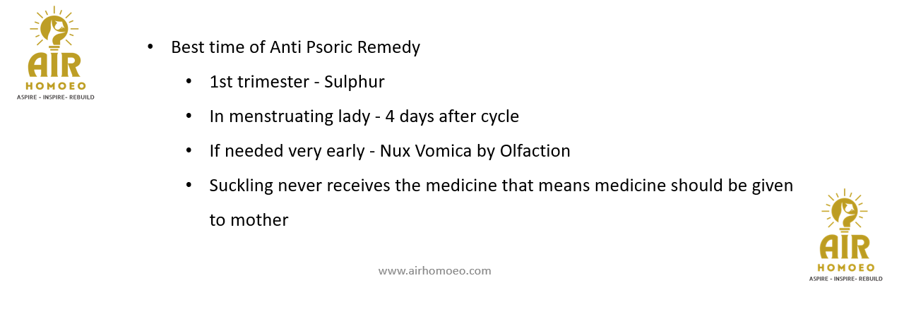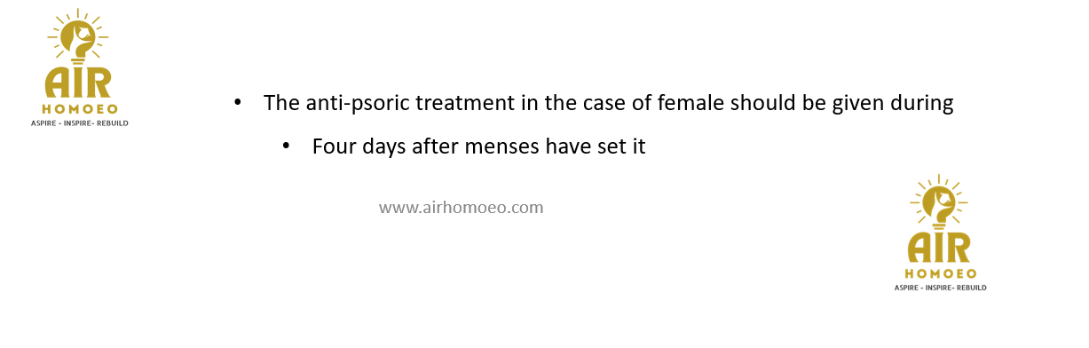 The best time for administering medicine in anti-psoric treatment is