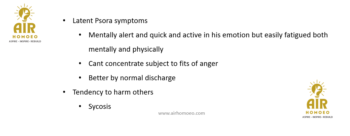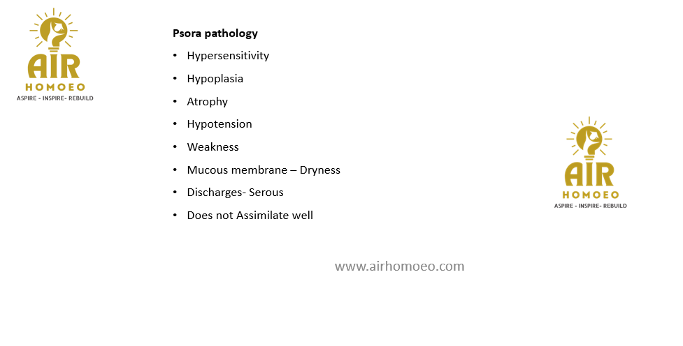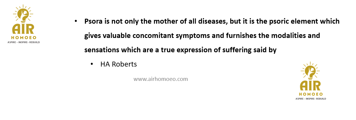 Psora is not only the mother of all diseases, but it is the psoric element which gives valuable concomitant symptoms and furnishes the modalities and sensations which are a true expression of suffering said by