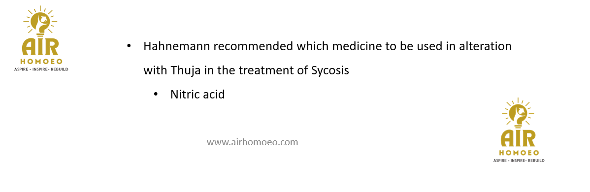 Hahnemann recommended which medicine to be used in alteration with Thuja in the treatment of Sycosis