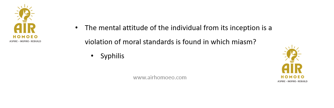The mental attitude of the individual from its inception is a violation of moral standards is found in which miasm?
