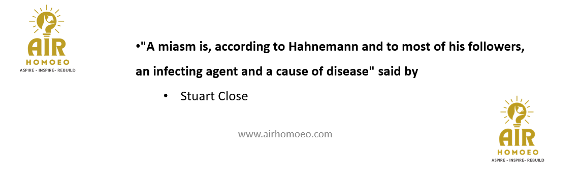 “A miasm is, according to Hahnemann and to most of his followers, an infecting agent and a cause of disease” said by