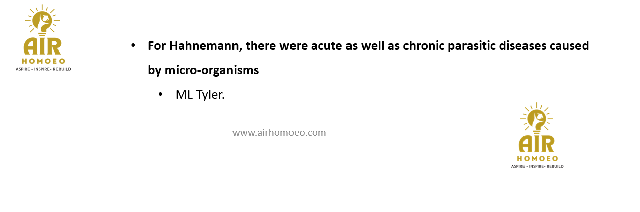 For Hahnemann, there were acute as well as chronic parasitic diseases caused by micro-organisms