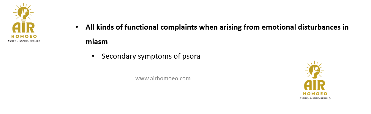 All kinds of functional complaints when arising from emotional disturbances in miasm