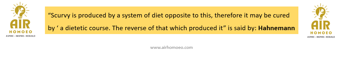 “Scurvy is produced by a system of diet opposite to this, therefore it may be cured by ‘ a dietetic course. The reverse of that which produced it” is said by:
