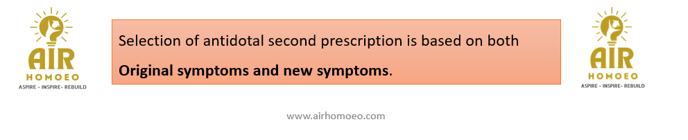 Selection of antidotal second prescription is based on