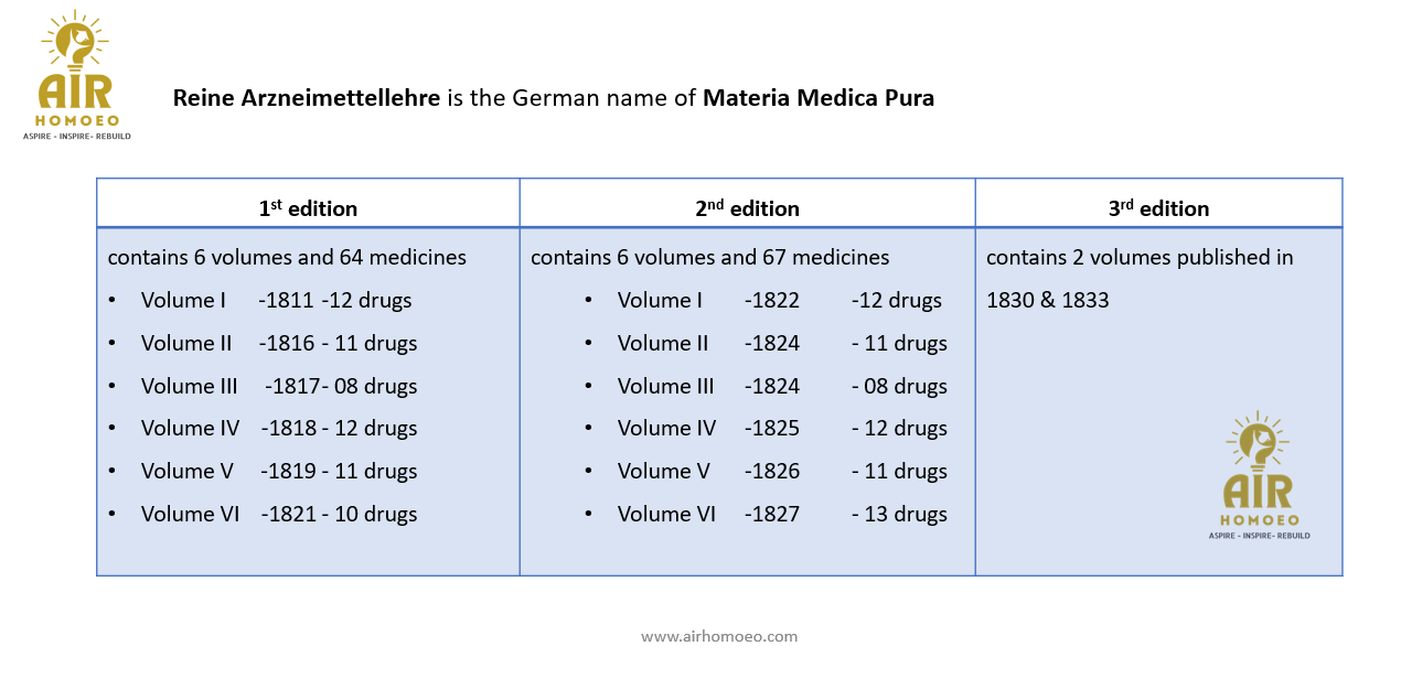 Dr. C.F.S. Hahnemann published the second augmented edition of his Reine Arzneimettellehre in the year of