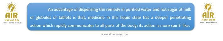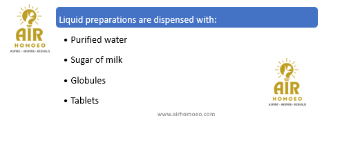 Reason (R): Liquid potencies are dispensed by medicating globules and also by medicating purified water