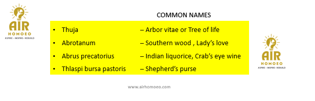 Match the list of medicines with their common names: