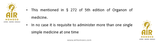 Assertion (A): In no case it is requisite to administer more than one single simple medicine at one time