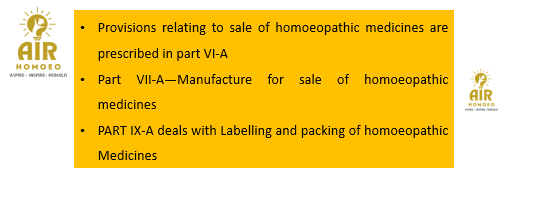 Provisions relating to sale of homoeopathic medicine are prescribed in part