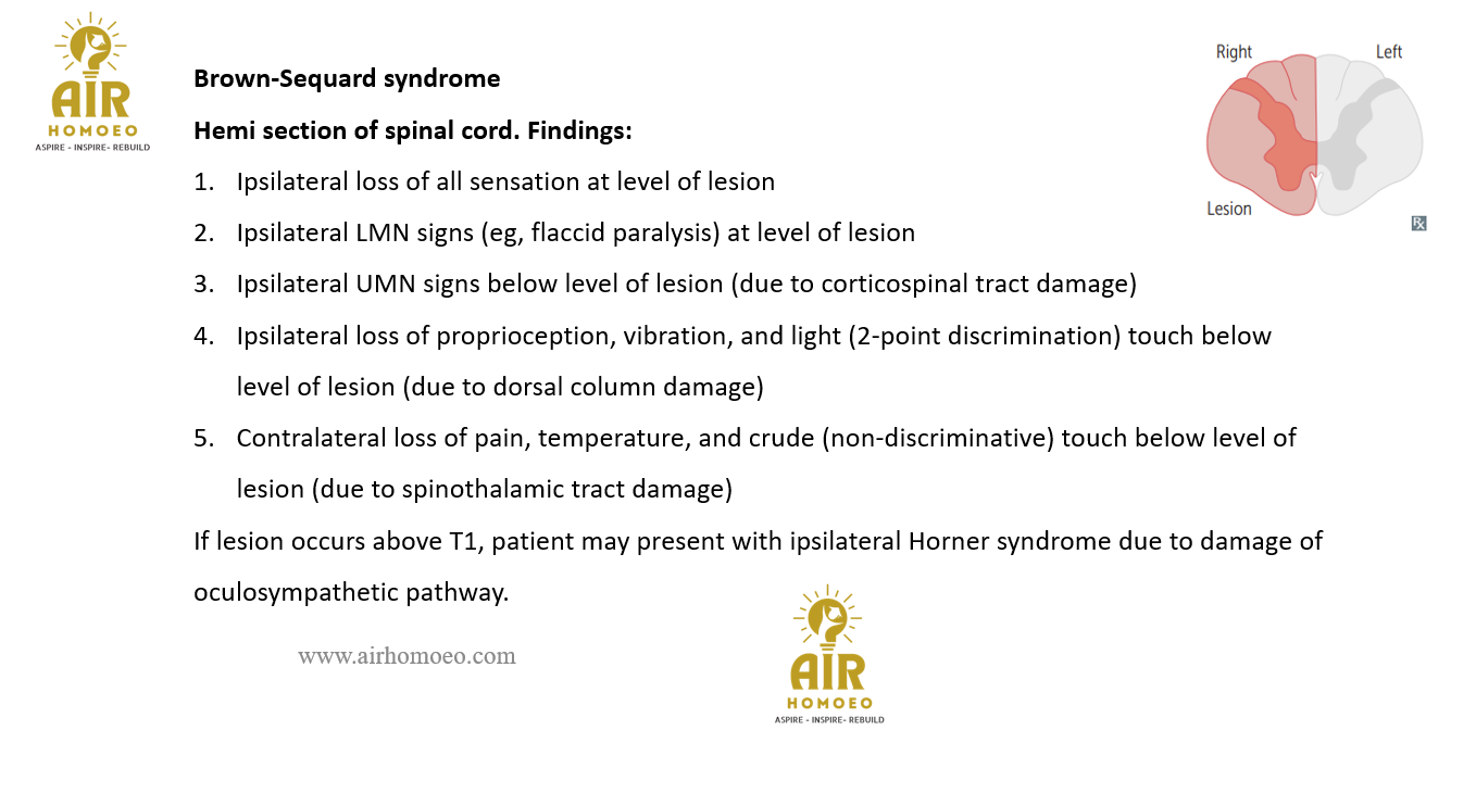 All are features of Brown-Sequard syndrome except: