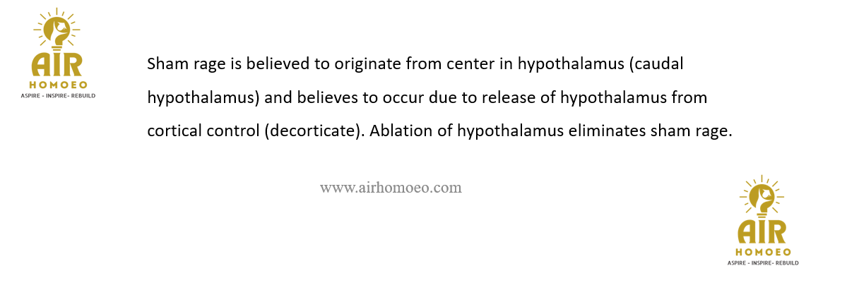 Reason (R): Ablation of hypothalamus eliminates sham rage.