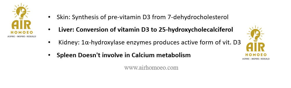 to 25-hydroxycholecalciferol Both Sink and Spleen involves in Calcium metabolism