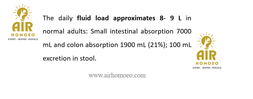 The amount of water absorbed in the intestine in a day is