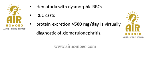 A.Hematuria with dysmorphic RBCs